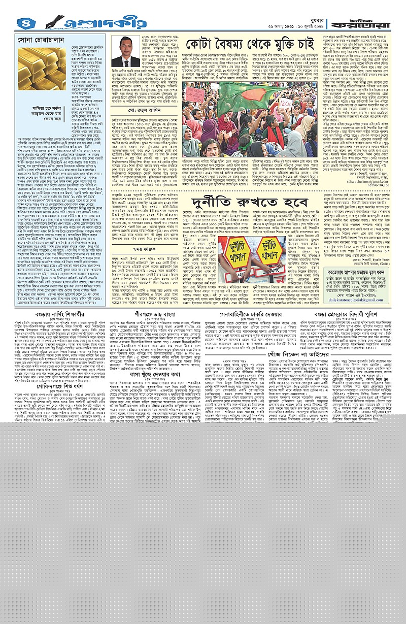ঢাকা ও বগুড়া বুধবার, ১০ জুলাই ২০২৪