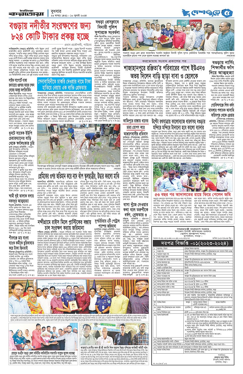 ঢাকা ও বগুড়া বুধবার, ১০ জুলাই ২০২৪