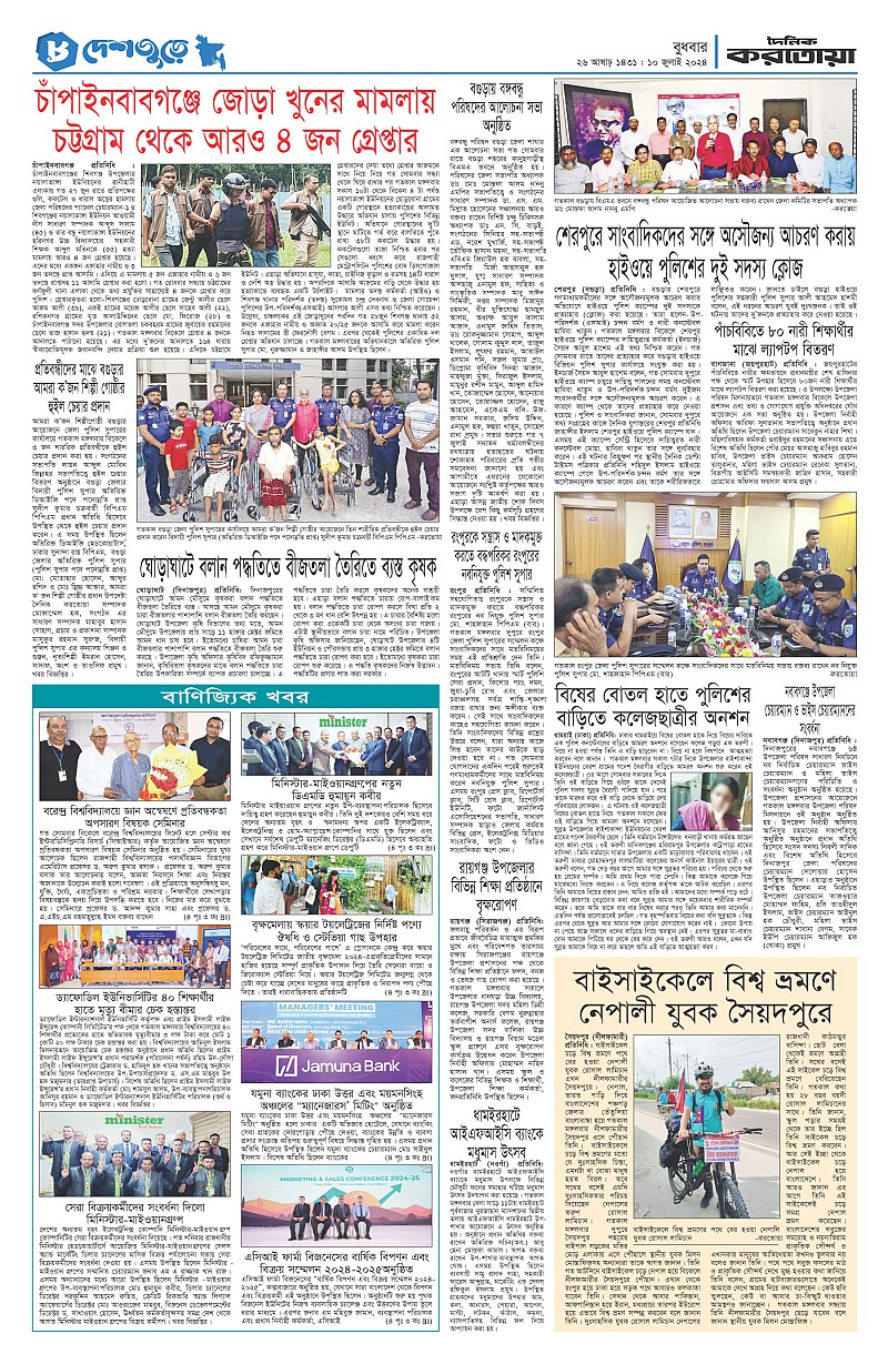 ঢাকা ও বগুড়া বুধবার, ১০ জুলাই ২০২৪