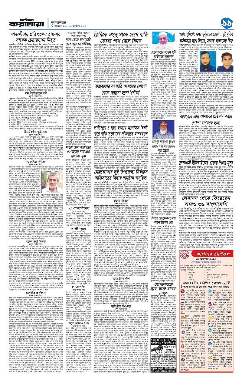 ঢাকা ও বগুড়া বৃহস্পতিবার, ৩১ অক্টোবার ২০২৪