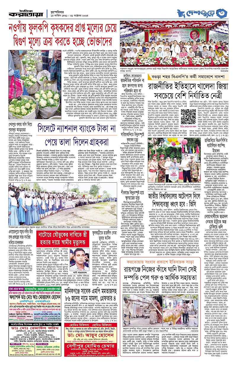 ঢাকা ও বগুড়া বৃহস্পতিবার, ৩১ অক্টোবার ২০২৪