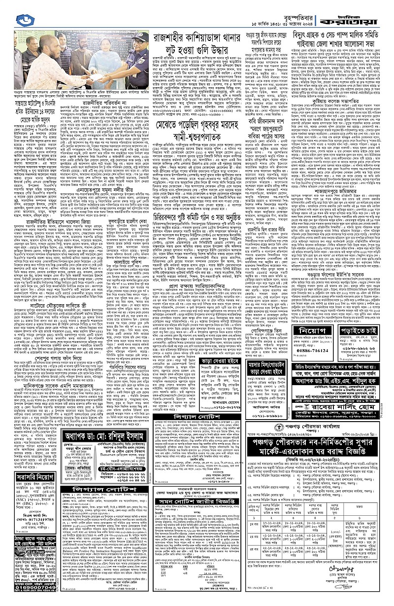 ঢাকা ও বগুড়া বৃহস্পতিবার, ৩১ অক্টোবার ২০২৪