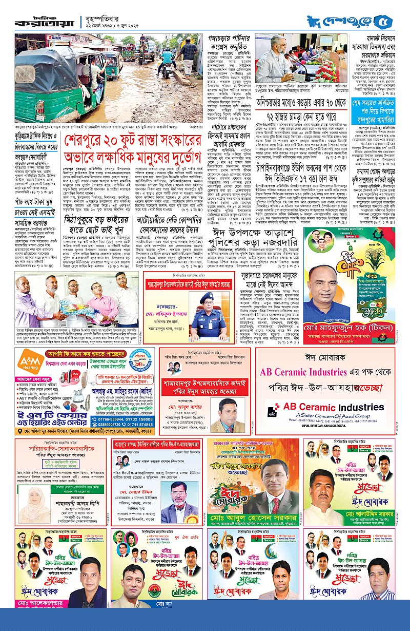ঢাকা ও বগুড়া বৃহস্পতিবার, ০৫ জুন ২০২৫