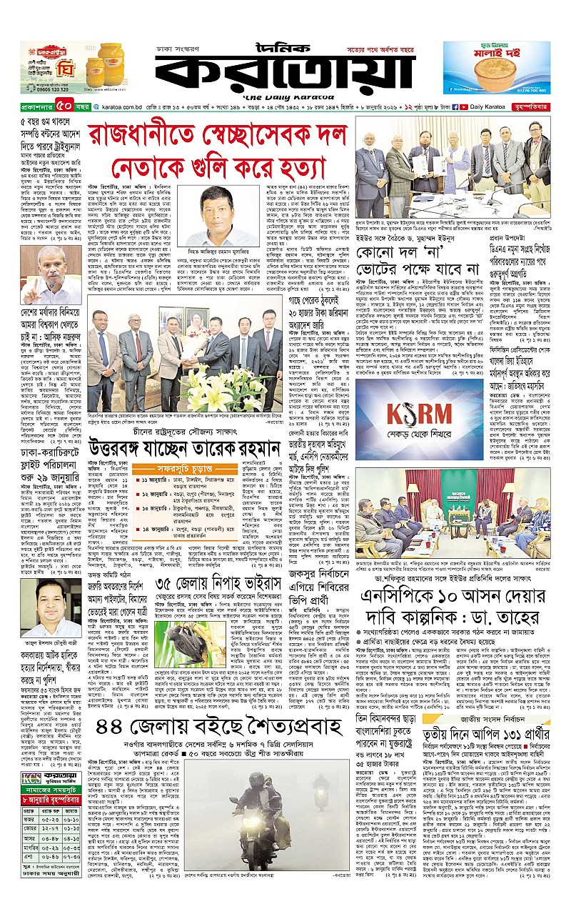 ঢাকা ও বগুড়া বৃহস্পতিবার, ০৮ জানুয়ারী ২০২৬