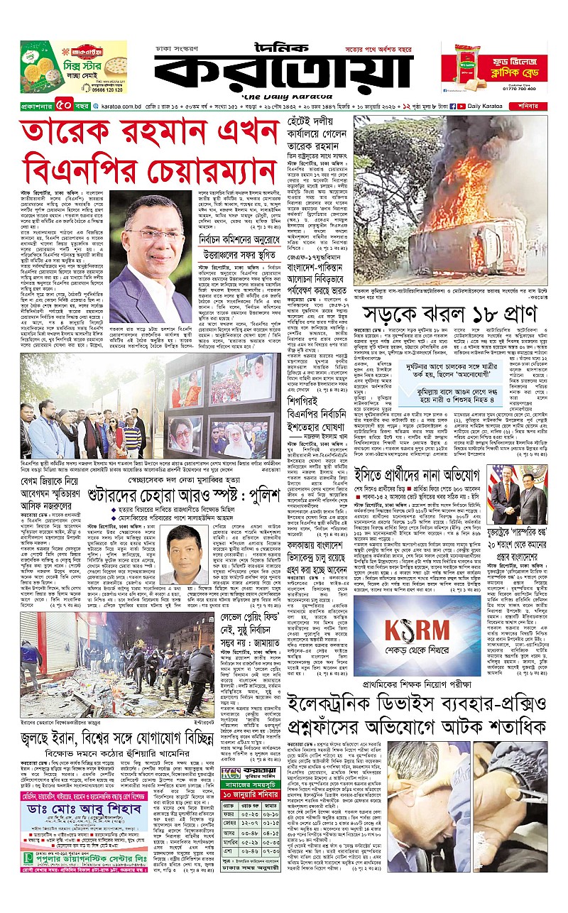 ঢাকা ও বগুড়া শনিবার, ১০ জানুয়ারী ২০২৬
