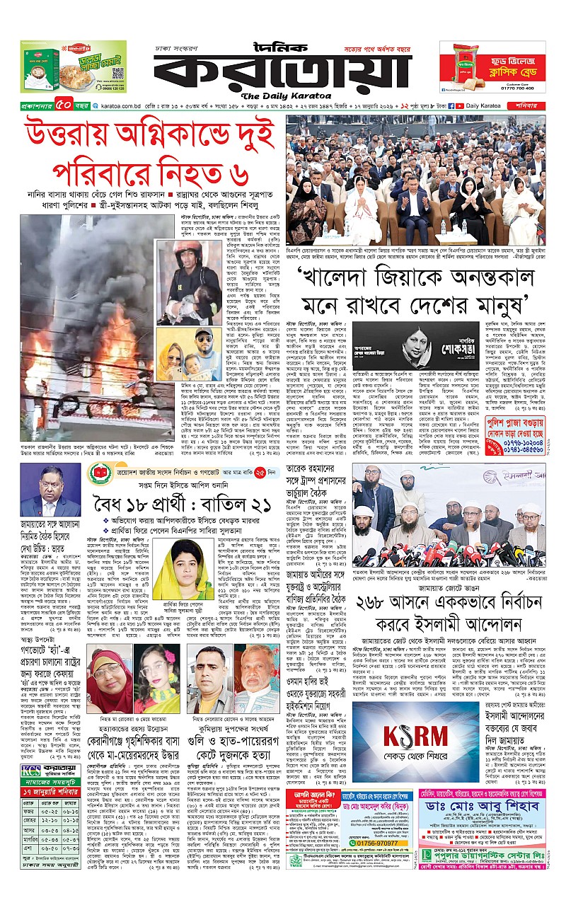 ঢাকা ও বগুড়া শনিবার, ১৭ জানুয়ারী ২০২৬