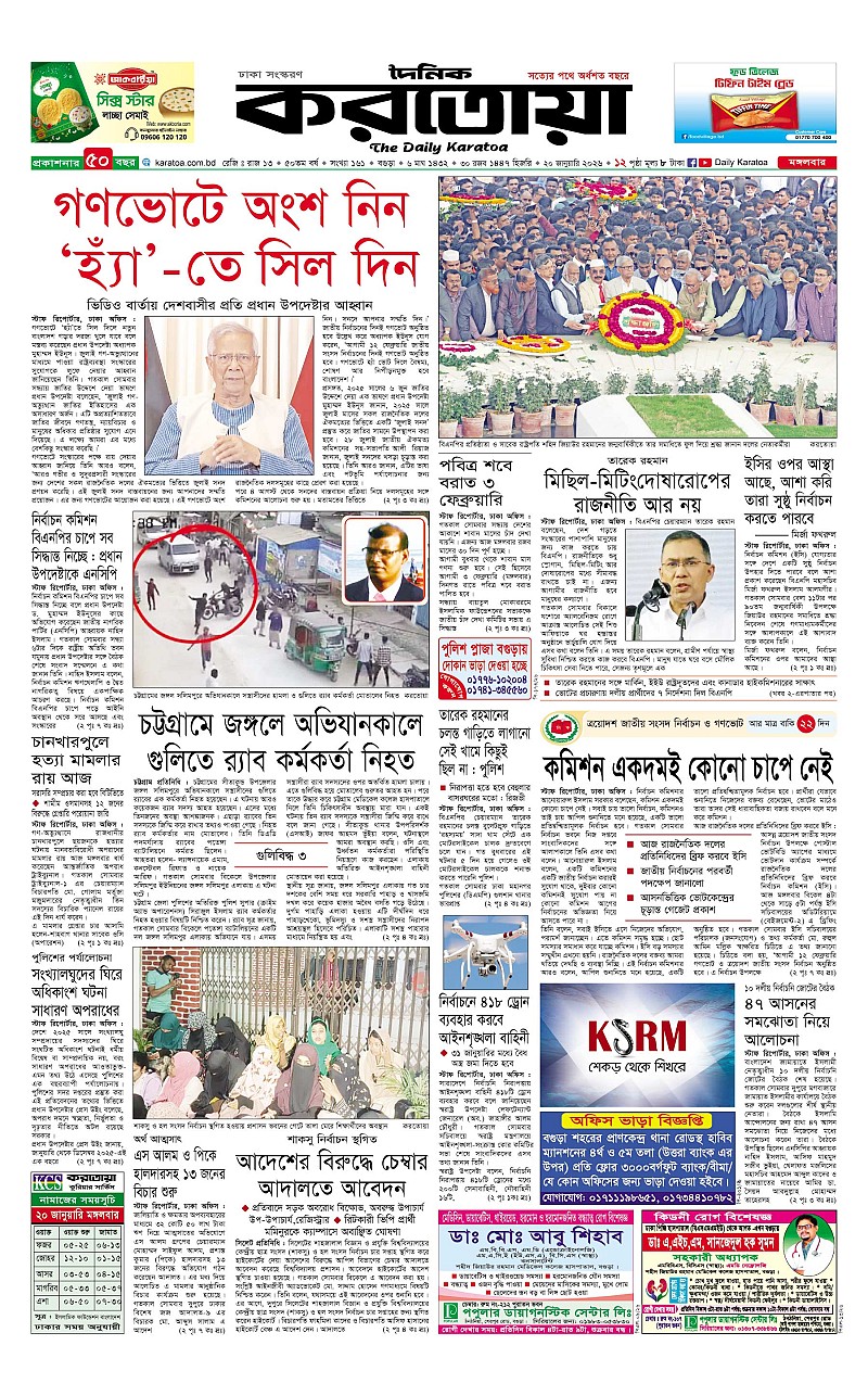 ঢাকা ও বগুড়া মঙ্গলবার, ২০ জানুয়ারী ২০২৬