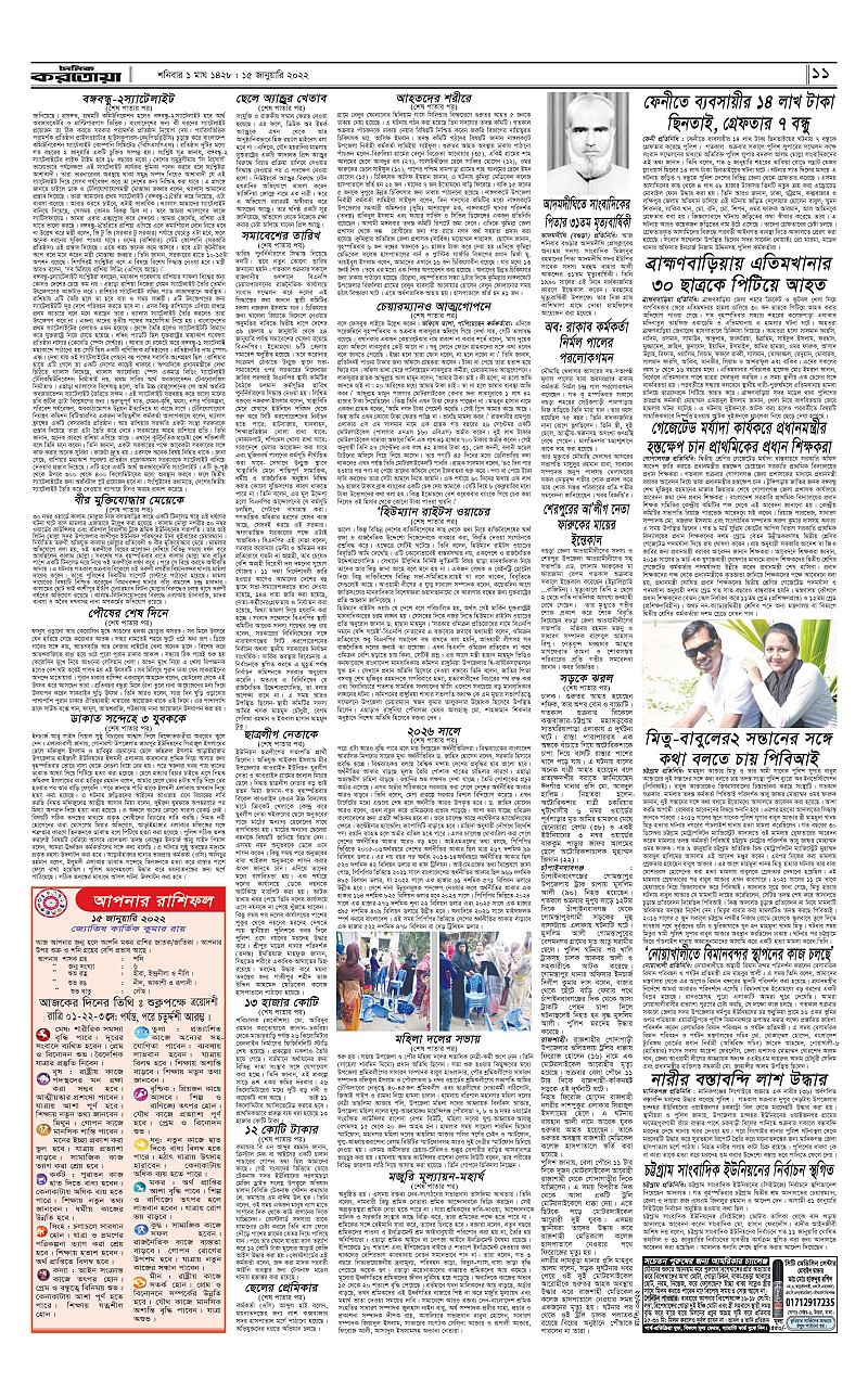ঢাকা ও বগুড়া শনিবার, ১৫ জানুয়ারী ২০২২