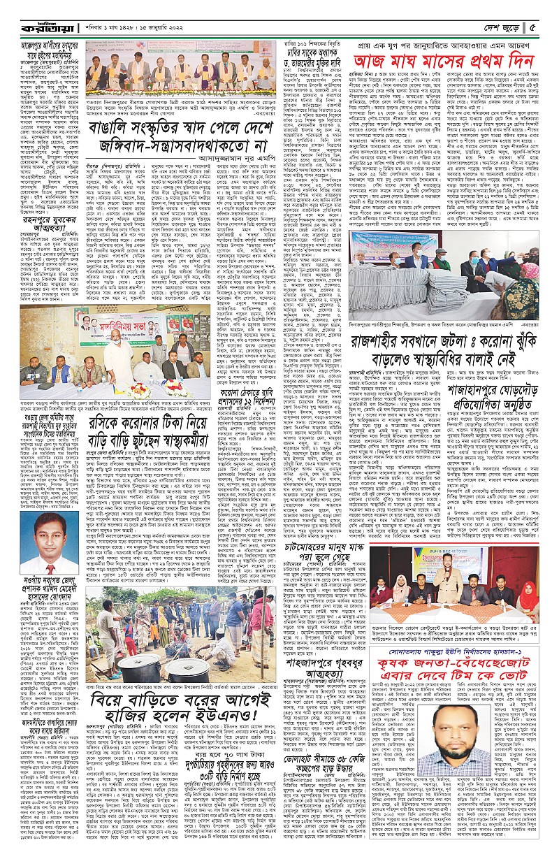 ঢাকা ও বগুড়া শনিবার, ১৫ জানুয়ারী ২০২২