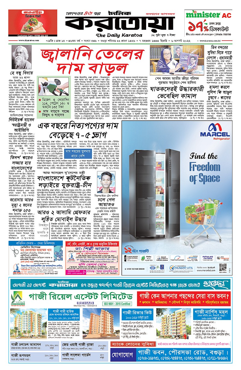 ঢাকা ও বগুড়া শনিবার, ০৬ আগষ্ট ২০২২