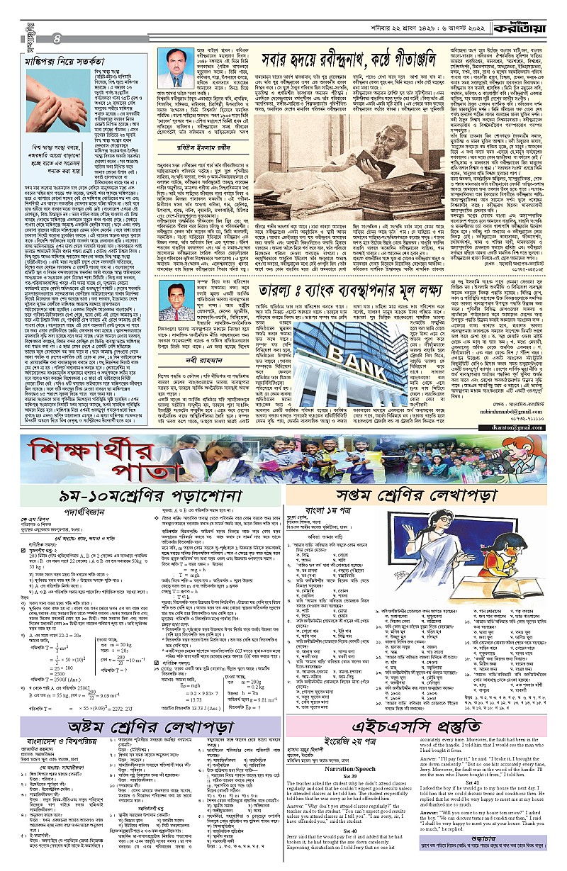 ঢাকা ও বগুড়া শনিবার, ০৬ আগষ্ট ২০২২