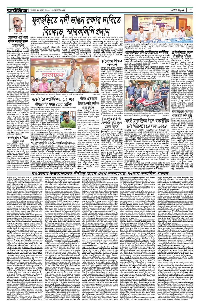 ঢাকা ও বগুড়া শনিবার, ০৬ আগষ্ট ২০২২