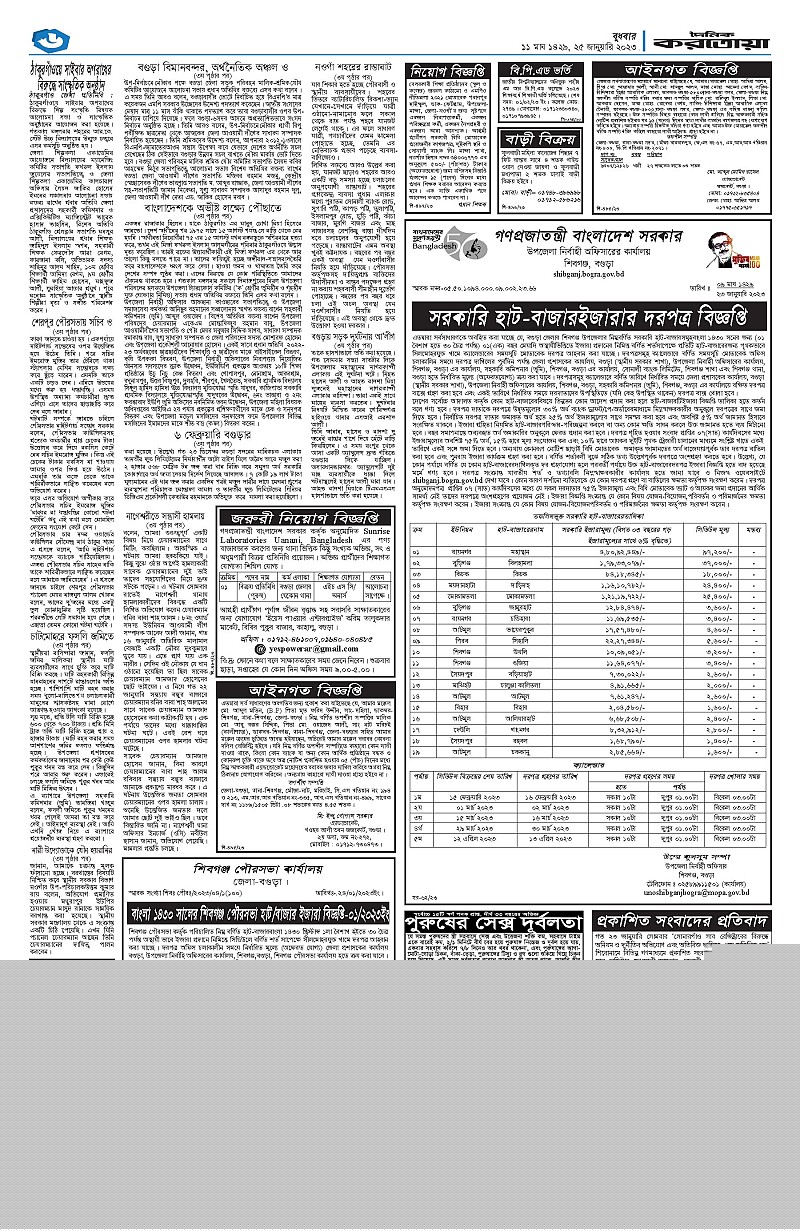 ঢাকা ও বগুড়া বুধবার, ২৫ জানুয়ারী ২০২৩