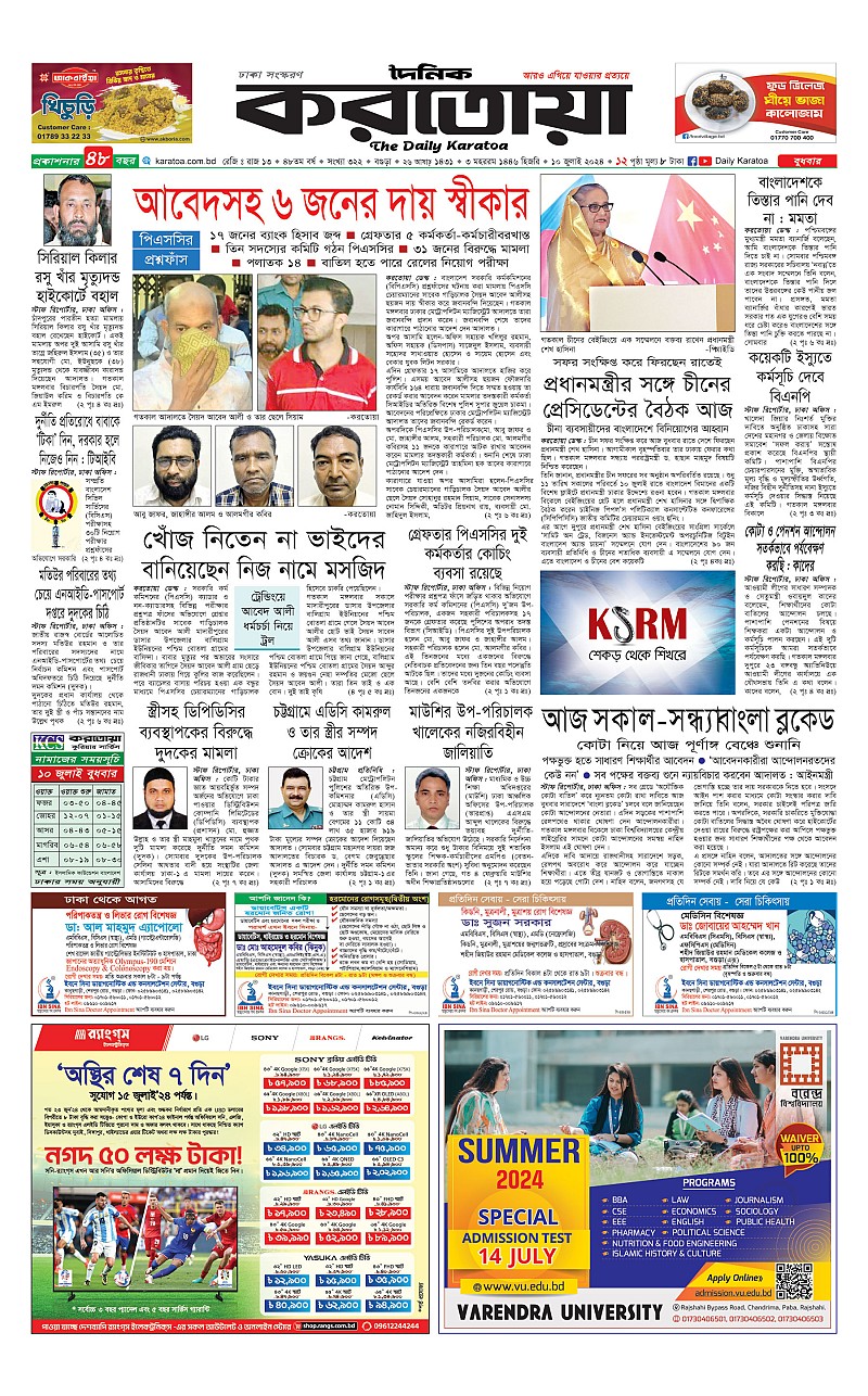 ঢাকা ও বগুড়া বুধবার, ১০ জুলাই ২০২৪