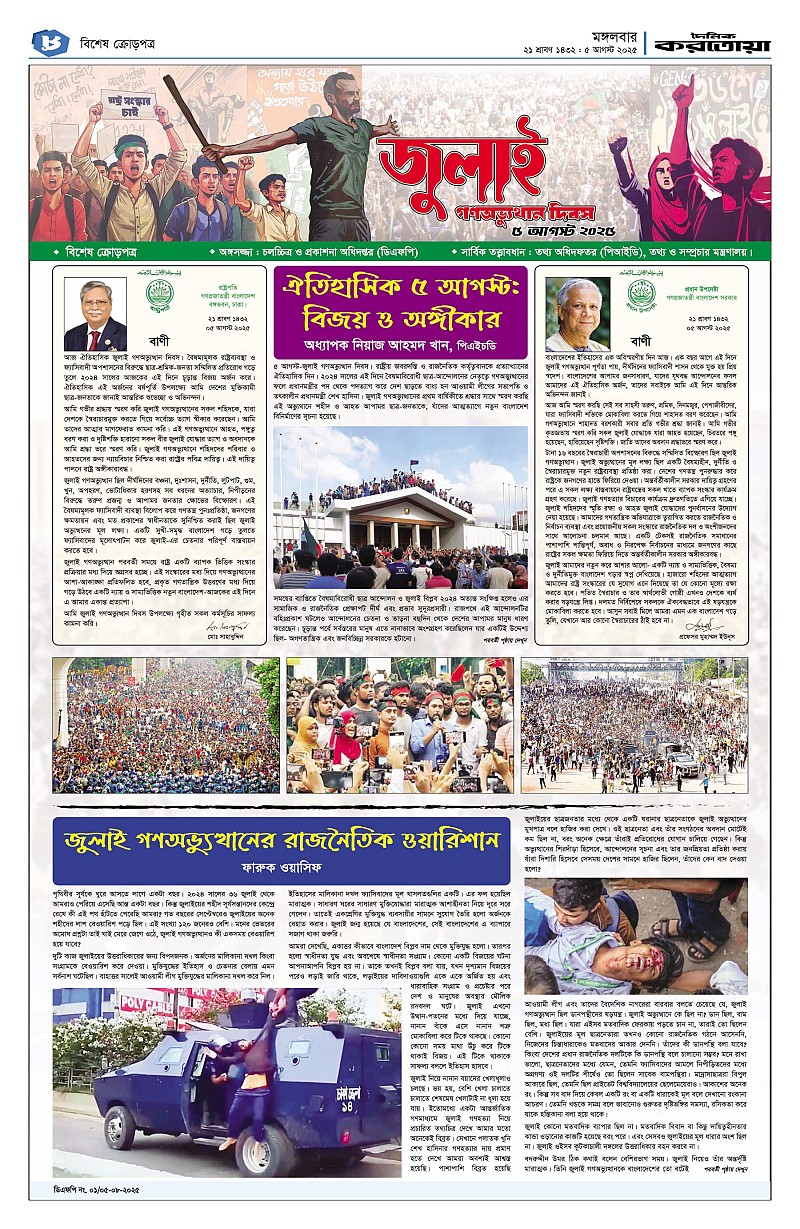 ঢাকা ও বগুড়া মঙ্গলবার, ০৫ আগষ্ট ২০২৫